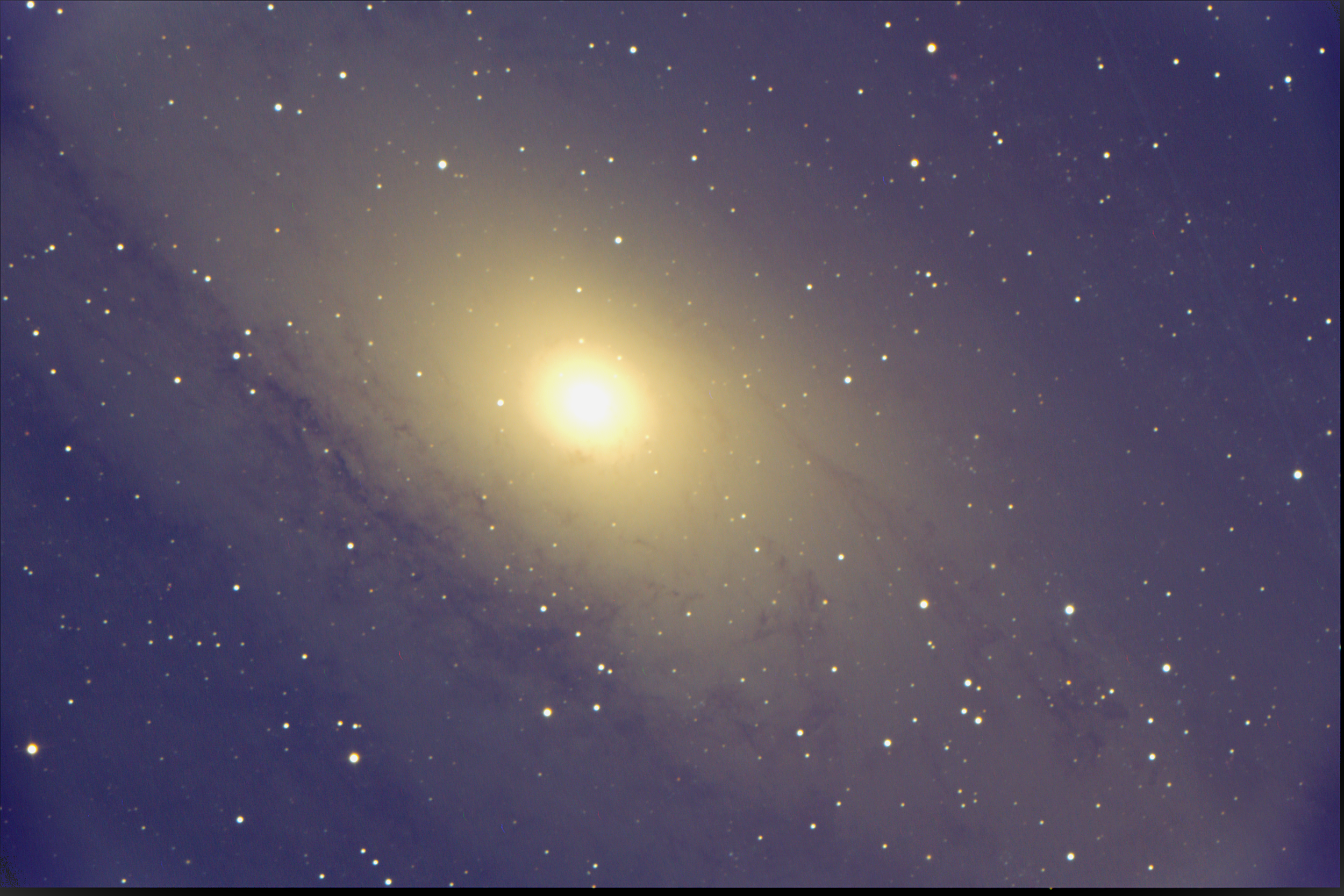 The mysterious Sculptor Galaxy, some 11 million light-years away is an active starburst galaxy. At its center is a massive black hole some 5 million times the mass of the Sun. This is taken from the observatory in Burnt Jacket.