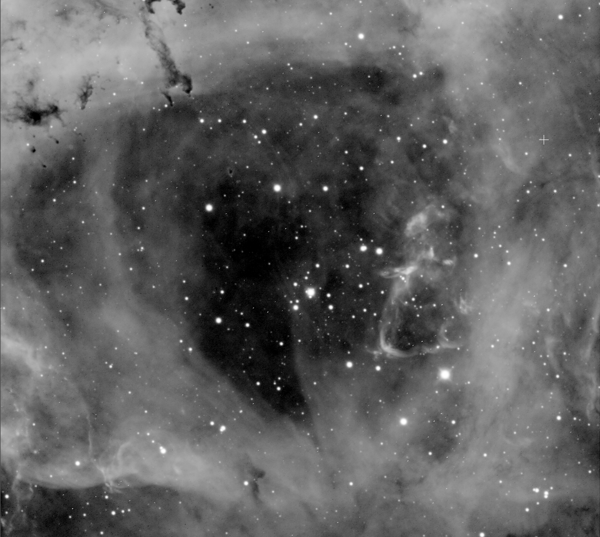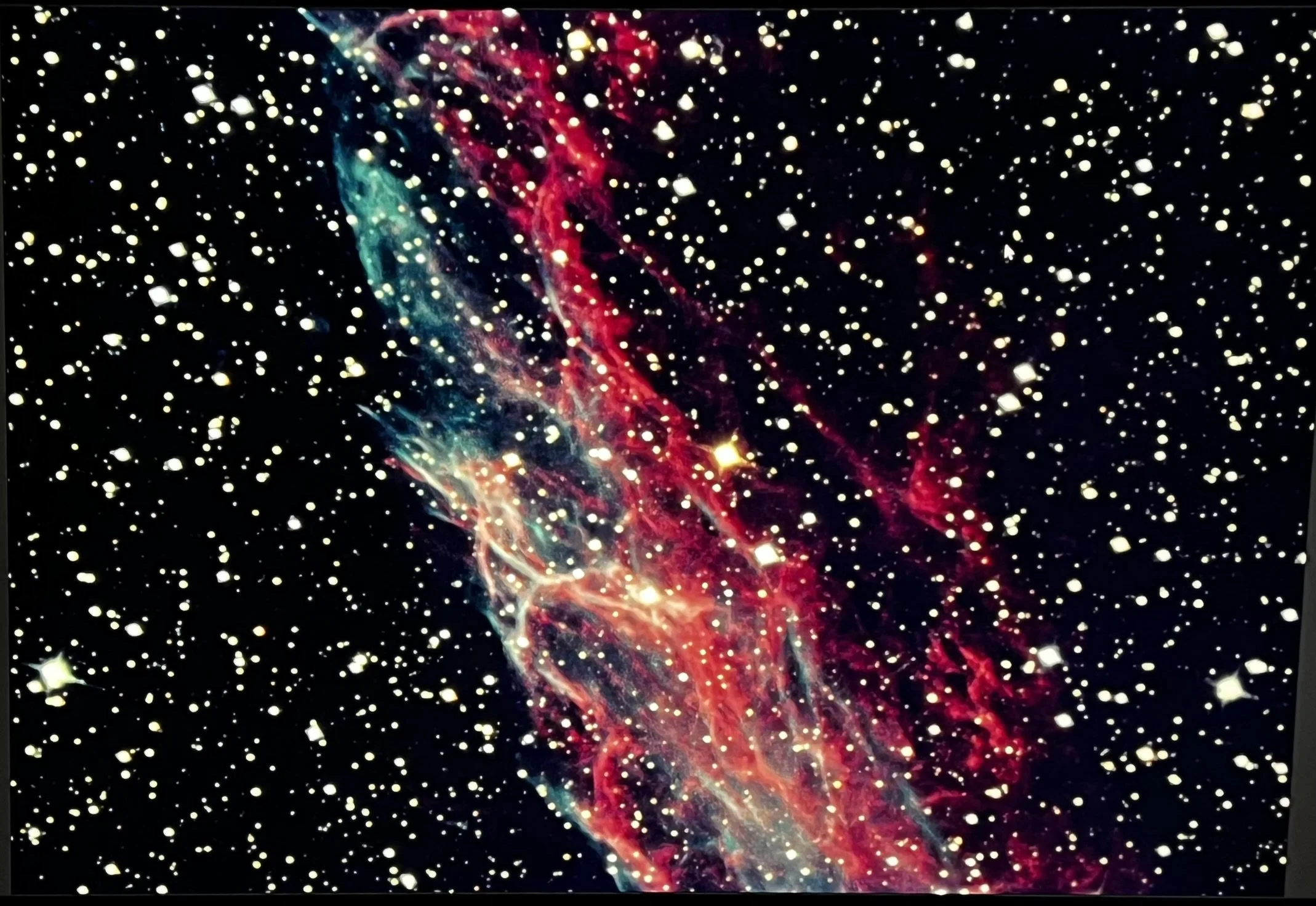 Another example from the Big Screen generated quickly by the CDK24 - a western portion of the Veil Nebula in Cygnus. 2400 Light Years away this is a remnant of a Supernova that was 20 times more massive than the Sun. The colors are generated from the heated and ionized gas and dust showing oxygen, sulfur, and hydrogen. Visible right here from the forests of Brunt Jacket!