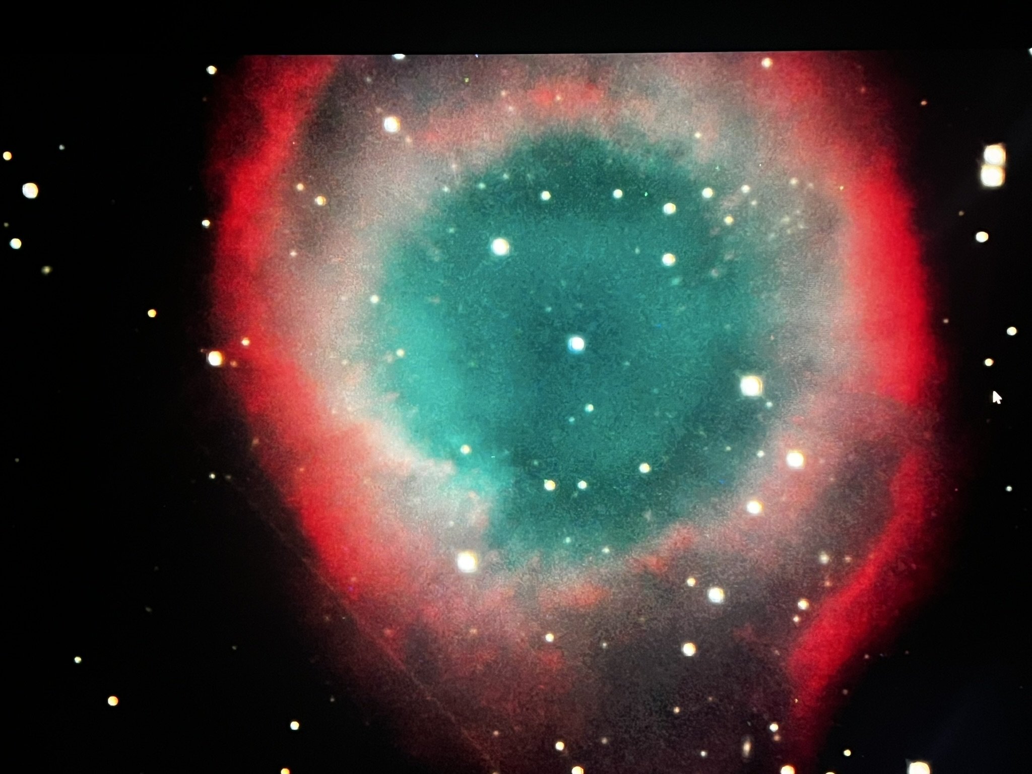 From the observatory's gallery, you can use your iPhone camera to capture scenes like this from the Big Screen - here is the center of our nearest neighboring galaxy, the Andromeda Galaxy about 2.5 million light years from Earth.