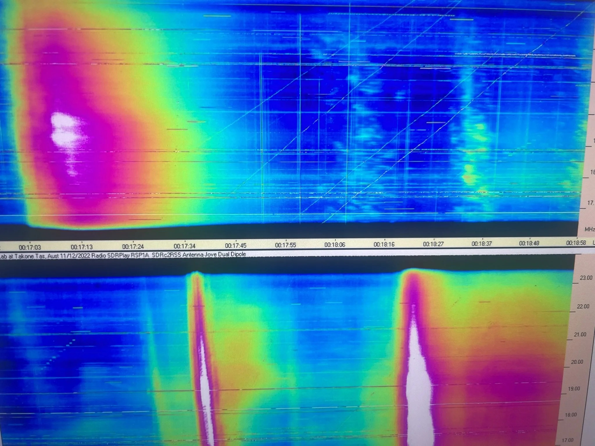 Radio Jove Spectrogram - Courtesy NASA Radio Jove . Example solar storm which we can see at facility installation